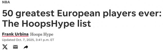 湖人新核东契奇第6名!在季前赛火热进行中,NBA新赛季正式到来之际,美媒《hoopshype》按照生涯成就评选出NBA欧洲球员TOP50名单,其中现役即战力第一人约基奇屈居第3,诺天王强势夺魁。