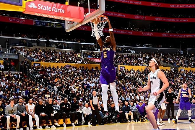 在此前的一场NBA常规赛中,主场作战的洛杉矶湖人以118比116惊险战胜了圣安东尼奥马刺。本场比赛后,豪取5连胜的湖人的战绩提升到了7胜2负,排名也是超过了马刺提升到了西部第2位;而遭遇了两连败的马刺的战绩则是下滑到了5胜2负,排名也是被多支球队反超下滑到了西部第5位。本场比赛后,湖人的先发中锋德安德烈-艾顿(DeAndre Ayton)接受了记者的采访,谈到了自己在比赛中在防守端的表现以及他与新队友们所建立起来的化学反应。